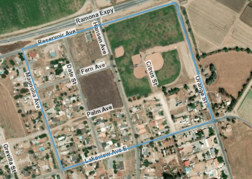 -- and the largest space, covering 172 acres, encompassing portions of west Nuevo, specifically Ninth Street to the north, 10th Street to the south, Reservoir to the west and Yucca Avenue to the east.