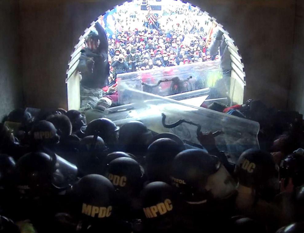 line of officers, striking an officer's riot shield. Finally, at 5:03 p.m., Dempsey threw two objects at officers in the Tunnel."