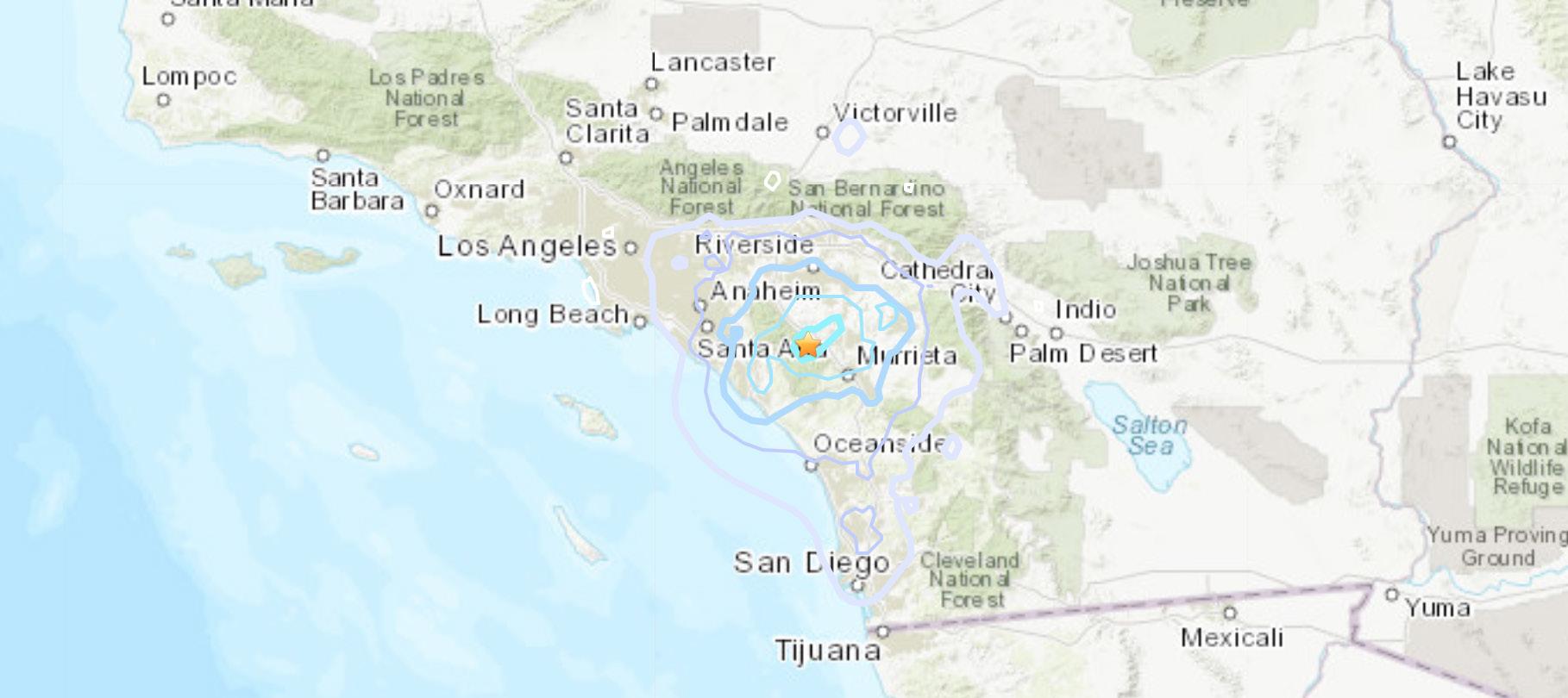 It was centered 23.8 miles southeast of Temecula and 24.4 miles east of East Hemet.