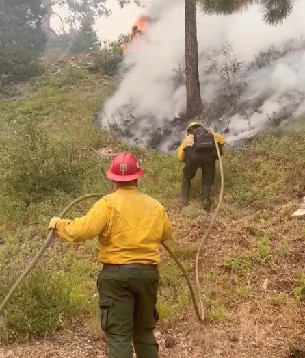 Firefighters battle the Bridge Fire. | Photo courtesy of Cal Fire/Flickr (CC BY-NC 2.0)
