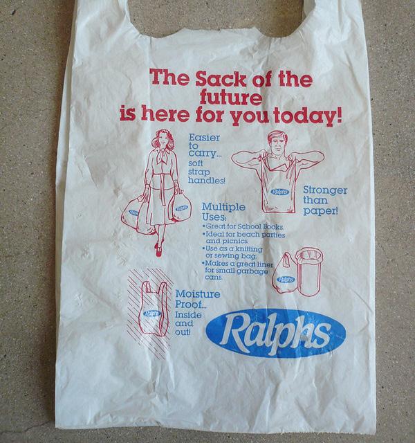 An early plastic grocery bag from Ralphs, possibly from the late 1970s. | Photo courtesy of jerical cat/Flickr (CC BY 2.0)