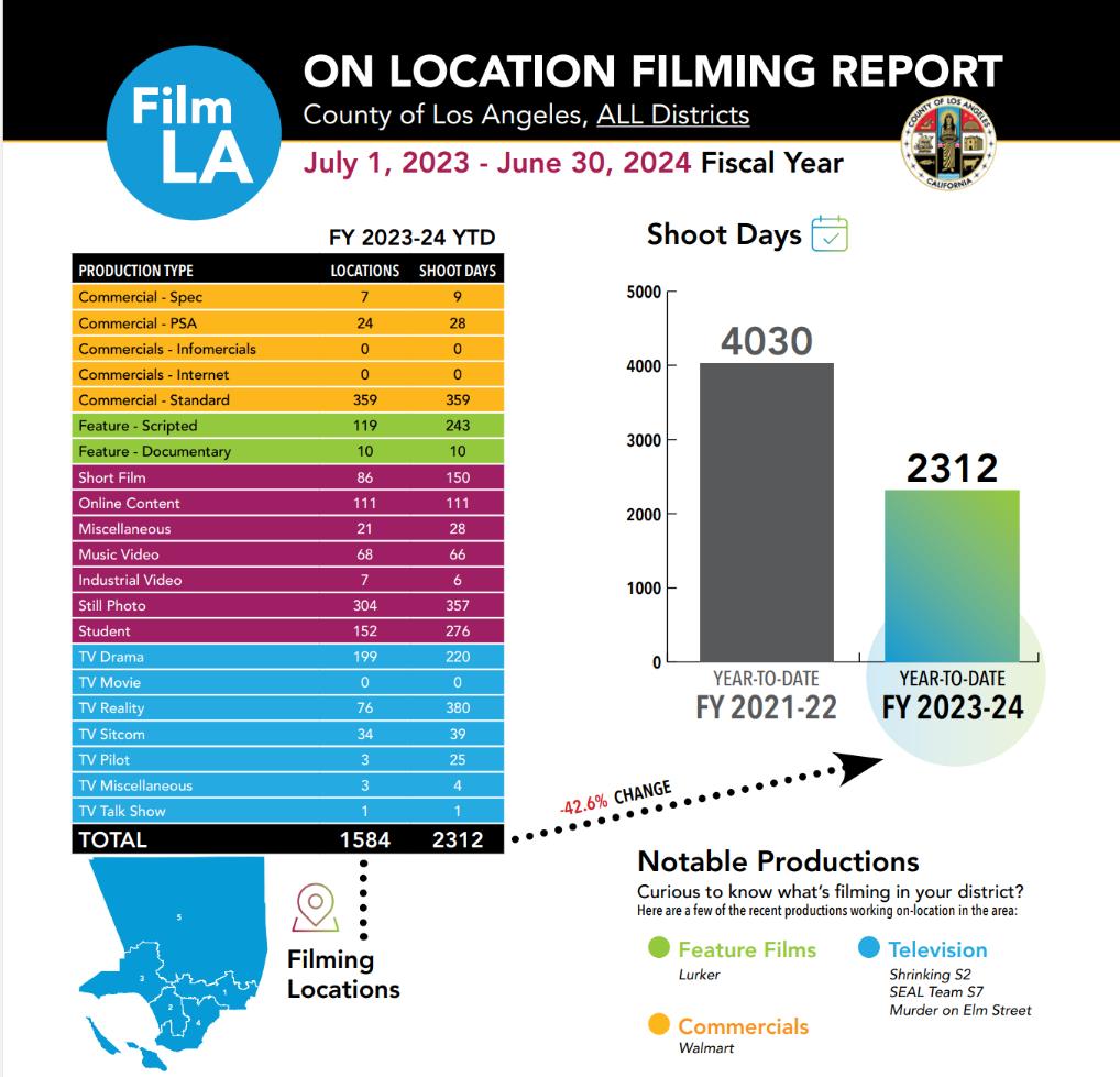 and tv production in the county, and the effects are still felt throughout the industry today. Combined with the writers and actors strikes and other disruptions, the entertainment business is still in a recovery phase.