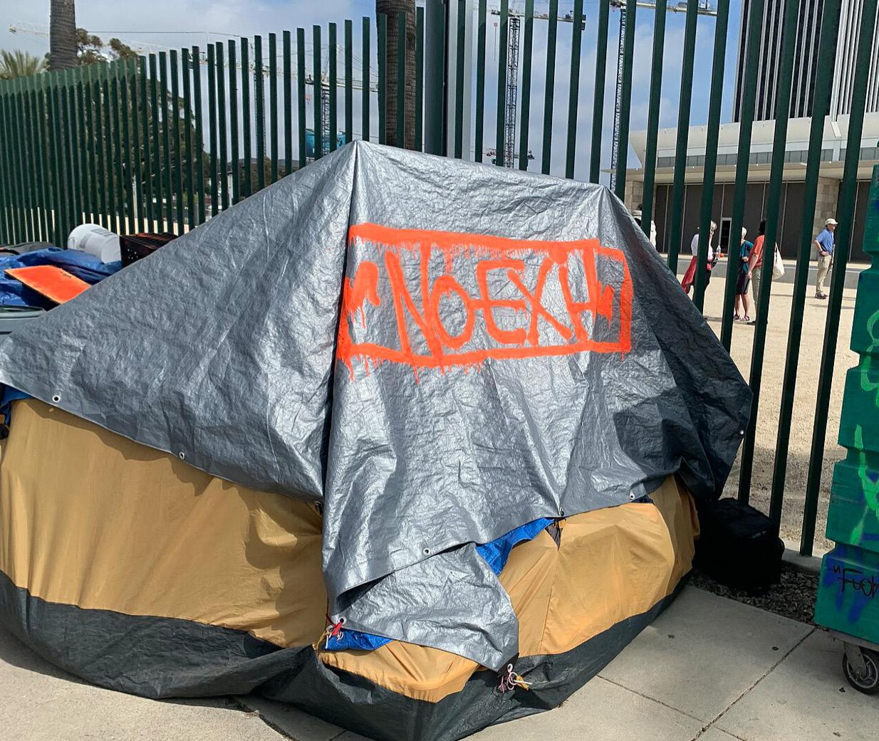 A homeless encampment outside the Los Angeles County Museum of Art. | Photo courtesy of CarmenEsparzaAmoux/Wikimedia Commons (CC BY-SA 4.0)