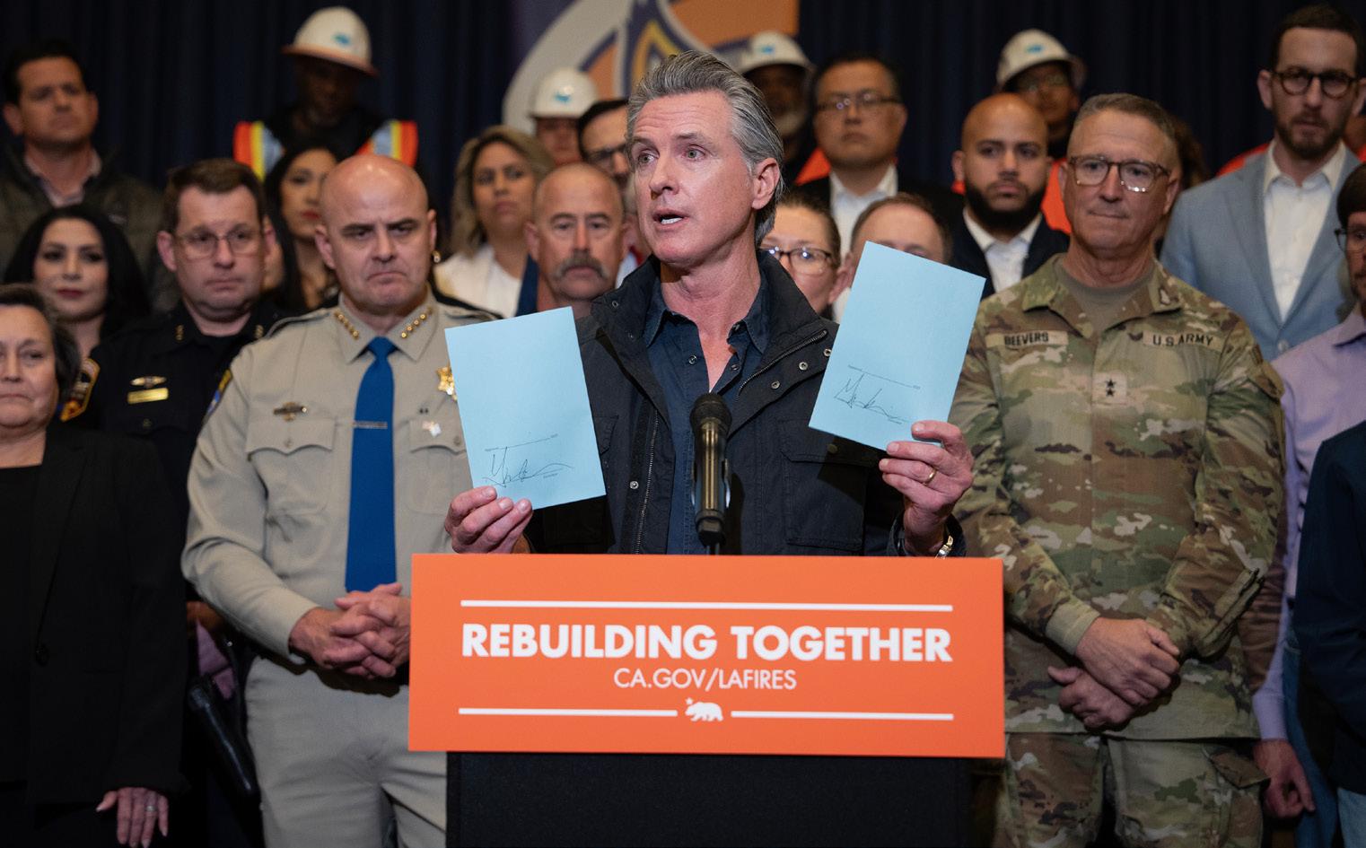 Newsom joined community leaders and elected officials near the devastated community of Altadena and signed the disaster relief bill.