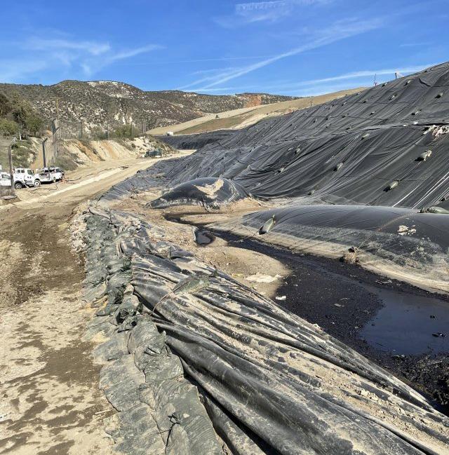 Liquids collect on scrim tarp and gas pillows at Chiquita Canyon Landfill on Jan. 18, 2024. | Photo courtesy of the U.S. EPA