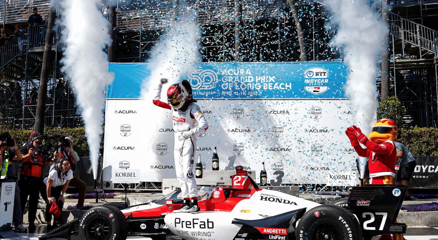 The Florida native completed the 177.12-mile race in 1 hour, 45 minutes, 51.2058 seconds and had an average speed of 100.395 mph in Andretti Global's No. 27 PreFab Honda.