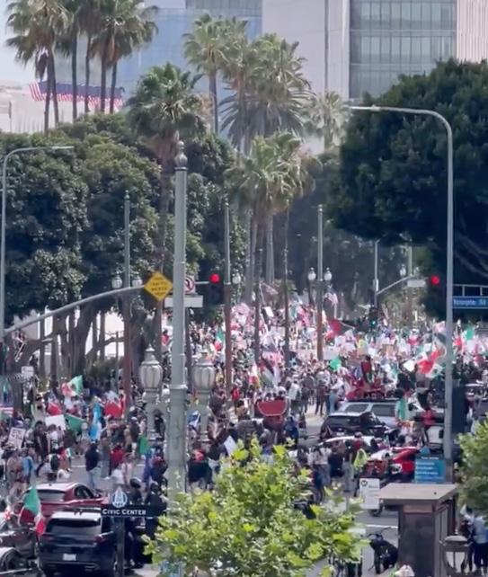 The downtown gathering was the largest of several held in Southern California counties. The demonstration began around 9:45 a.m. and was mostly peaceful until police ordered the crowd on Alameda Street between Aliso and Temple streets to disperse at about 3:45 p.m.
