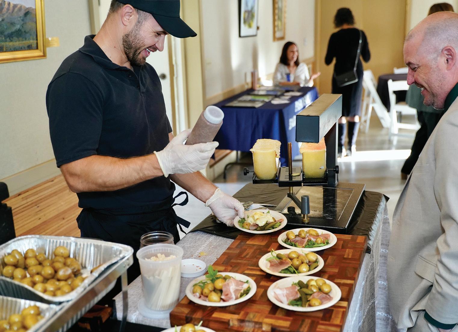 Along the end zone of the Rose Bowl’s 50-yard line is the large tent occupied by Agnes Restaurant and Cheesery where there is a dizzying amount of cheese on the tables. Vanessa and Thomas Tilaka Kalb, this year’s host chefs, gladly chat with us.