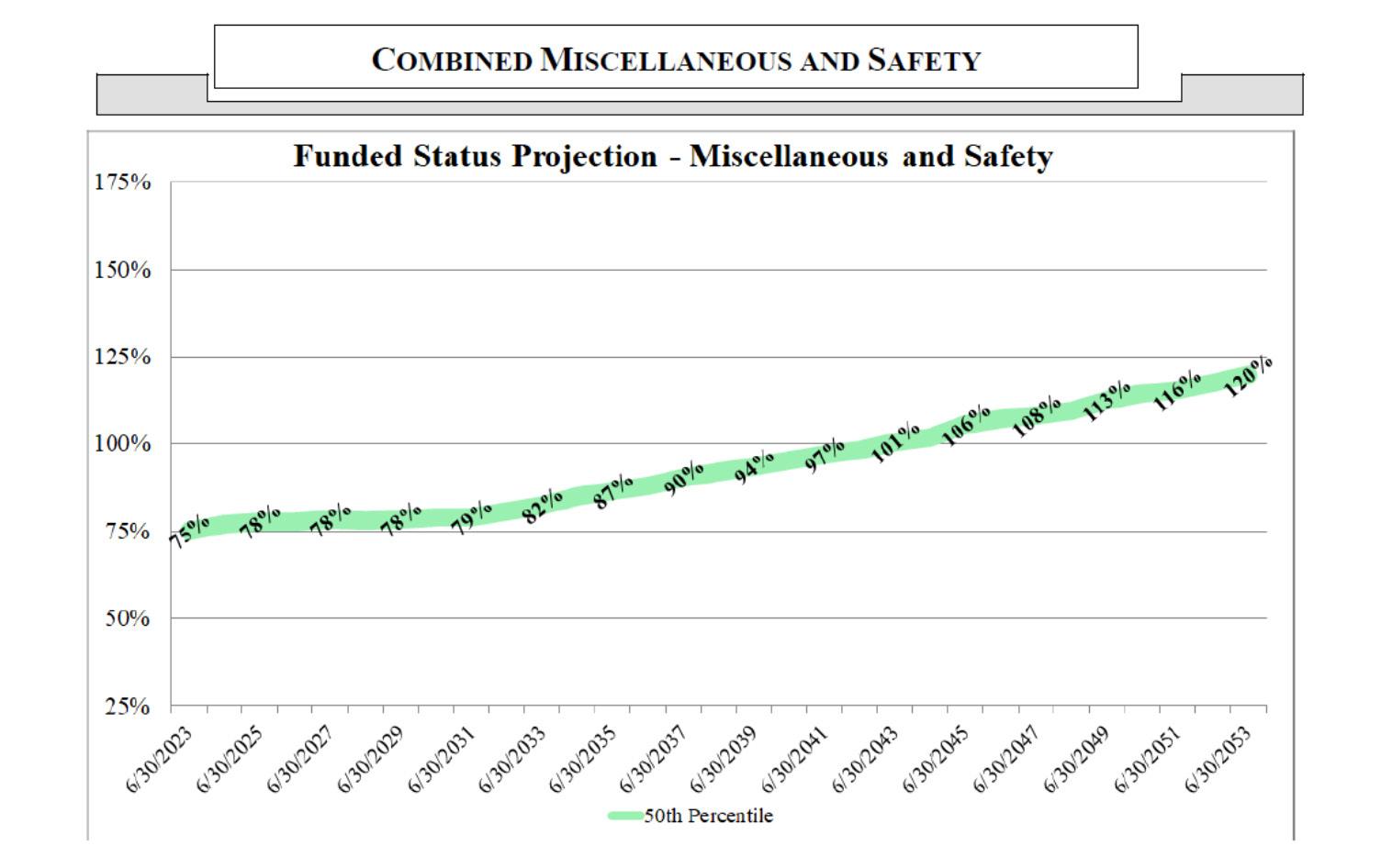stated. "The funded status is anticipated to be more than 80% within ten years, which has suffered a setback due to the negative investment returns experienced in fiscal year 2021-22. Projections will be tempered by year-to- year financial market performance."
