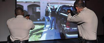 Deputies do virtual firearm training at the Ben Clark Training Center in Riverside. | Photo courtesy of the Riverside County Sheriff's Department