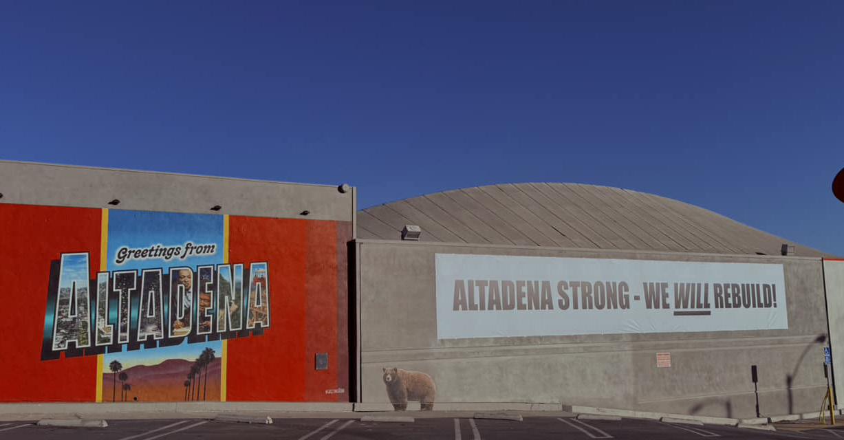 exterior scorching” in the fire. A “Greetings from Altadena” mural on the building also survived with only some “bubbling” of the paint due to the fire’s heat.