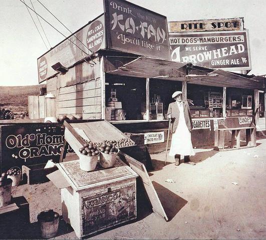 Lionel Sternberger is said to have invented the cheeseburger in the mid-1920s at this roadside snack stand on Colorado Boulevard in Pasadena. Pictured is Lionel’s father Herman Sternberger where the stand was later rebuilt as a restaurant named the Rite Spot. | Photo courtesy of Don Sternberger/Pasadena Restaurant Week