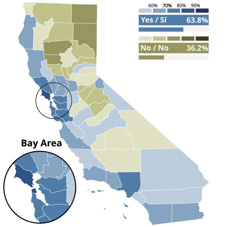 This map shows voting results in California counties for Proposition 50 congressional redistricting. | Image courtesy of MapperGuy87/Wikimedia