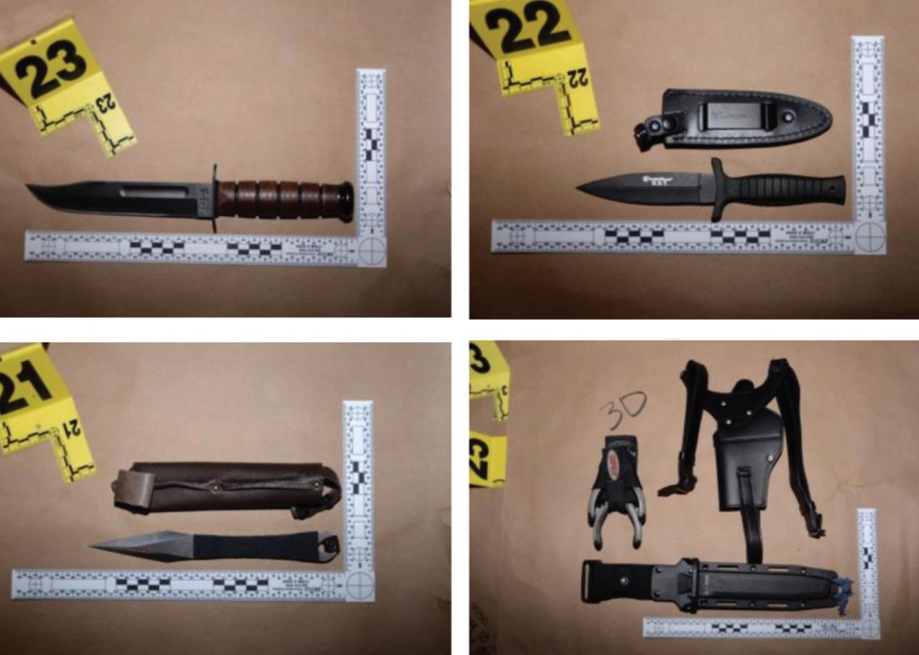 Authorities recovered these knives, allegedly in Allen's possession when he was taken into custody. | Photo courtesy of the U.S. Department of Justice