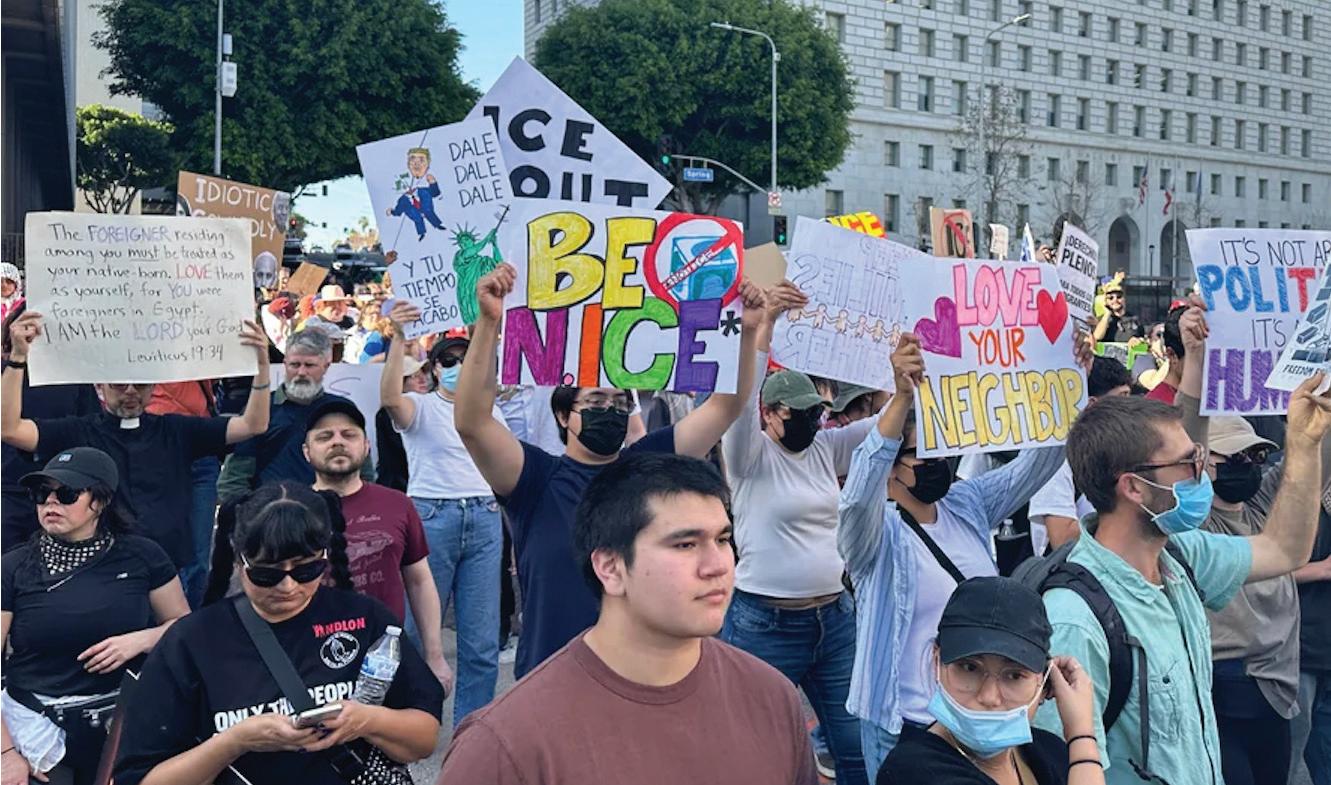 Demonstrators in downtown Los Angeles participate in a nationwide protest against ICE over the weekend. | Photo courtesy of of u/youhavetherighttoo/Reddit