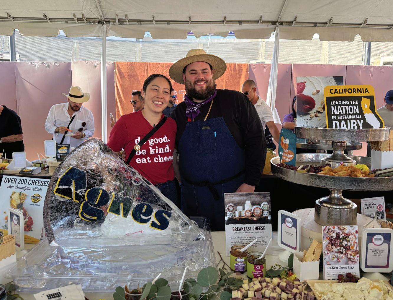 Along the end zone of the Rose Bowl’s 50-yard line is the large tent occupied by Agnes Restaurant and Cheesery where there is a dizzying amount of cheese on the tables. Vanessa and Thomas Tilaka Kalb, this year’s host chefs, gladly chat with us.