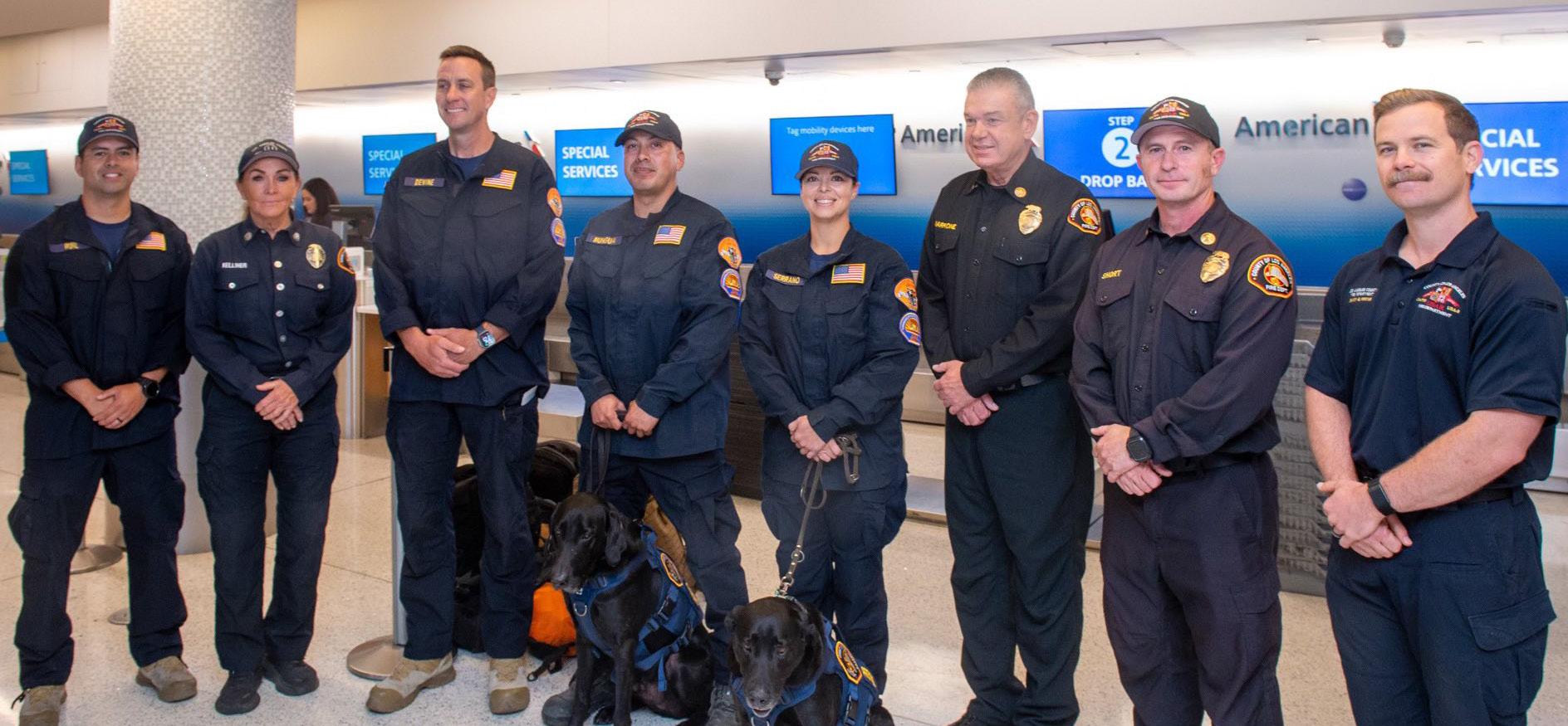 A pair of canine teams from the Orange County Fire Authority also departed from LAX Wednesday morning to assist in Texas search efforts.