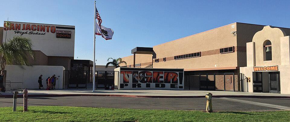 Agas line was split open Thursday in the parking lot of San Jacinto High School, prompting firefighters to evacuate the campus as a precaution.