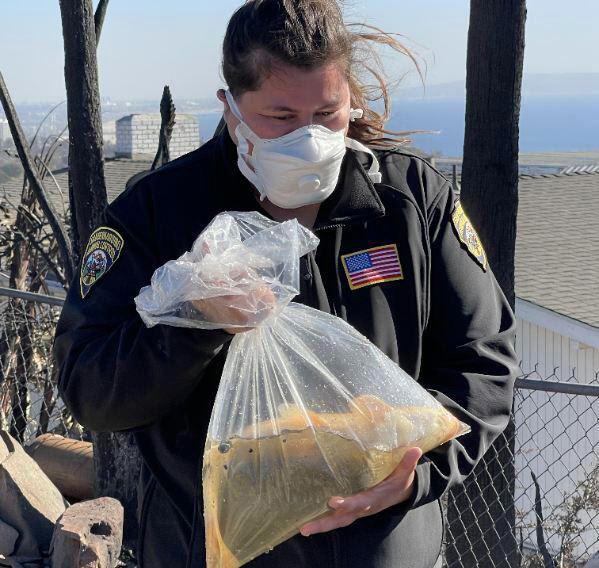 A San Bernardino Animal Services officer rescues a fish in the aftermath of the Palisades Fire. | Photo courtesy of the city of San Bernardino