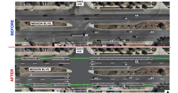 The street upgrades are part of the TCC Active Transportation Project A, which plans 5 miles of one-way buffered bike lanes and 3 miles of new sidewalks along Mission Boulevard, between Benson and Euclid avenues, according to the city. The project also features updates