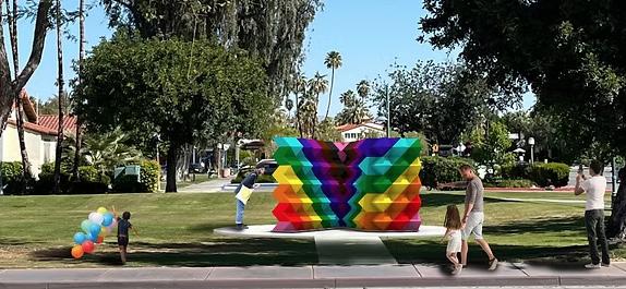Palm Springs Pride and city officials presented a concept photo Monday of the planned Pride monument expected to be installed in September to honor the contributions of the LGBTQ+ community and its allies.