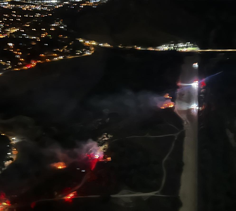 Firefighters responded to a report of three brush fires around 10:15 p.m. Friday, but upon arrival found seven separate fires burning from the area of the American Legion Riverside Post 79 at Lake Evans to Mission Inn Avenue, the Riverside Fire Department announced.