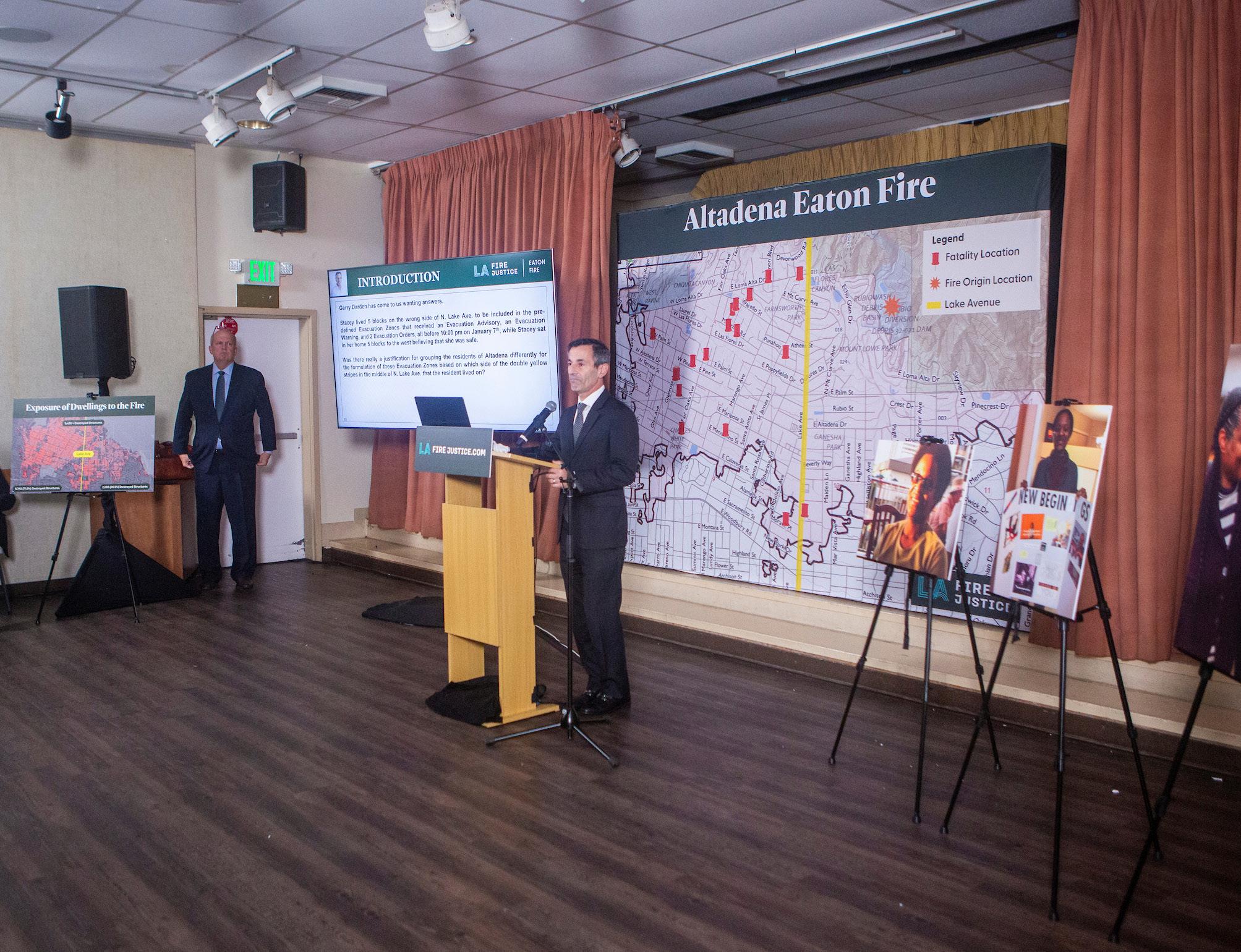 LA Fire Justice held a press conference on Mondayconcerning Eaton Fire victim Stacey Elizabeth Darden who died Jan. 8 in her Altadena home. Attorneys for Darden’s family filed a wrongful death lawsuit Monday against Southern California Edison.