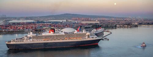 MondayinLong Beach, as the Queen Mary 2 ocean liner anchored alongside her historic namesake, the Queen Mary, for the first time in 20 years.