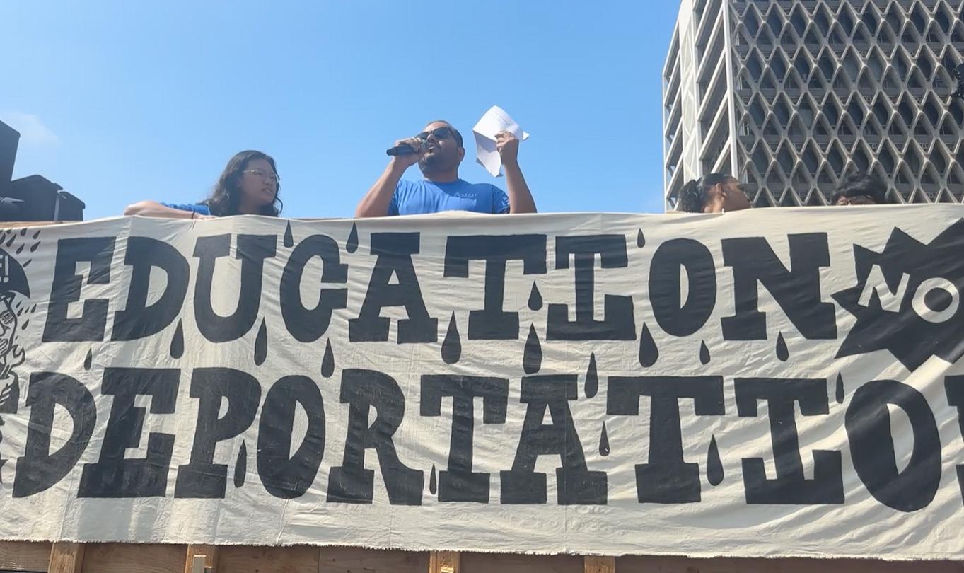 The protest was organized by the Coalition for Humane Immigrant Rights Los Angeles, Service Employees International Union Local 721, Central American Resource Center