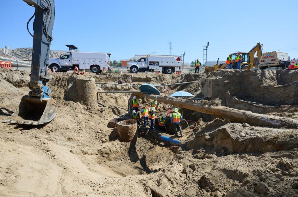 DWP workers dig deep in order to restore water to over 9,200 customers in the San Fernando Valley. | Photo courtesy of the LADWP