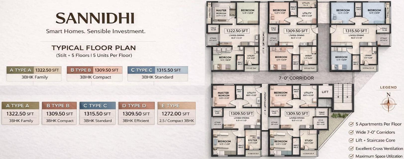 Every home at Sannidhi is created with intention — ensuring that your everyday living feels seamless, open, and balanced.