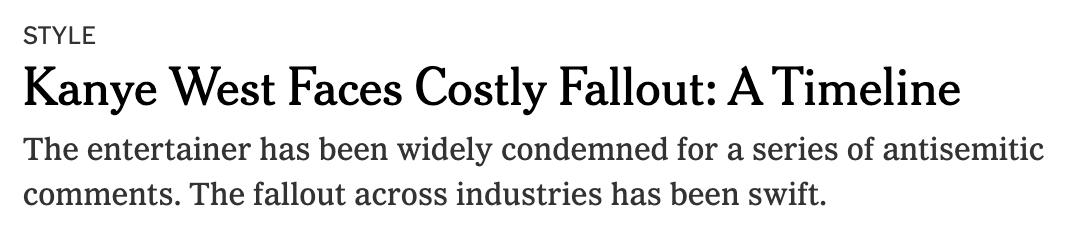Since the tweet, Ye has been locked out from Twitter, dropped from his record label and is fac ing a lawsuit from George Floyd’s family. He said he lost $2 billion in value, going from a billionaire to a millionaire.
