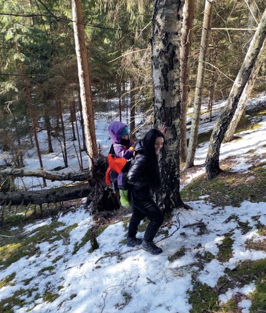 prastų formų, visada turi dugną, todėl paskui į vidų pribe riu saldainių, įstatau šviečiančią LED žvakelę, ant pagrindo smagu prilipdyti kokių mielų detalių. Tešlą įpjaunant pei liuku galima imituoti medžio žievę, tik reikia prisiminti, kad meduoliai kepdami šiek tiek pučiasi, tad įspaudas turi būti gana gilus.