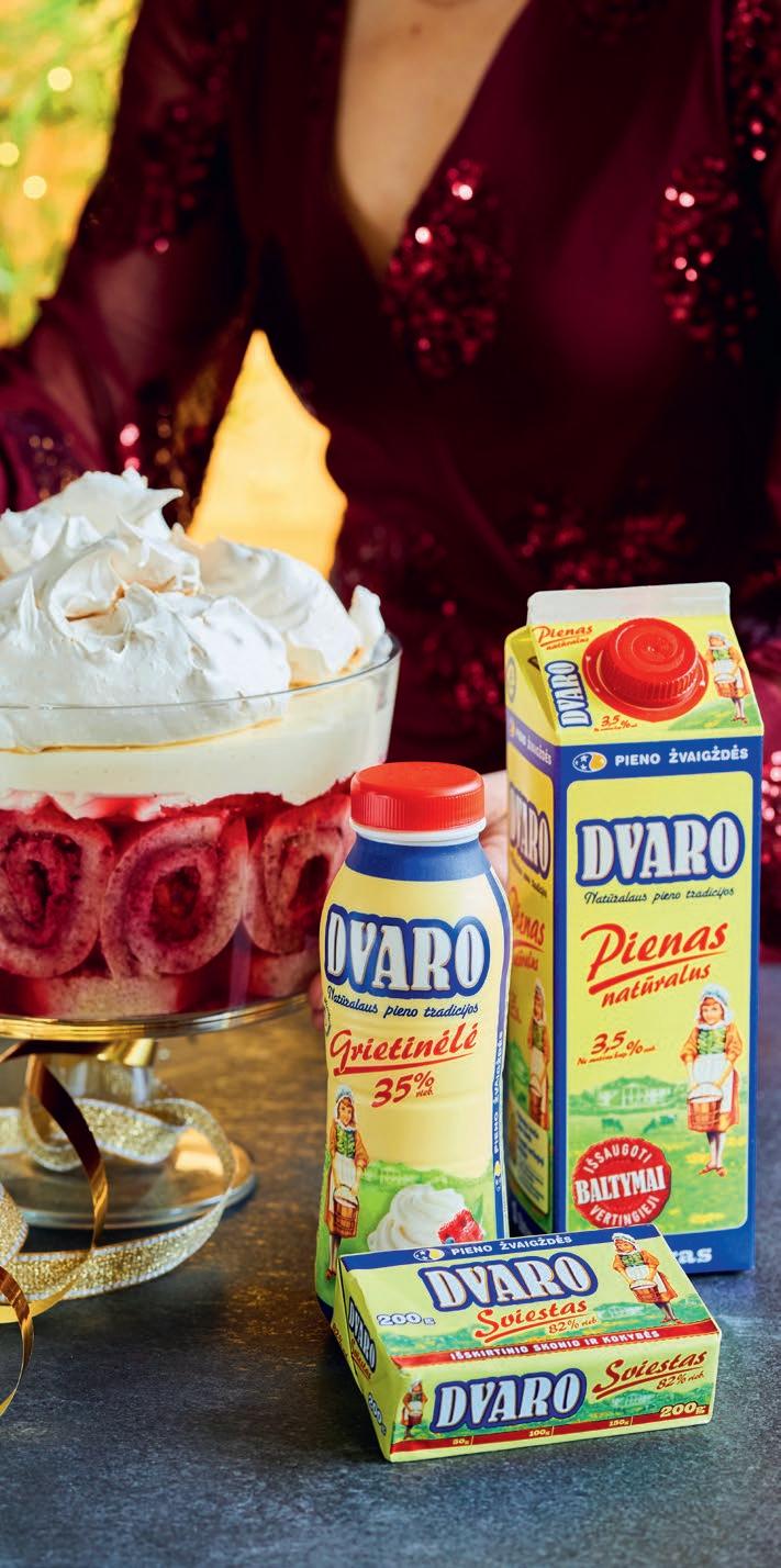 6. Gaminame kremą. Į prikaistuvį supilame DVARO grietinėlę ir DVARO pieną. Įdedame perpus perpjautą ir išskobtą vanilės ankštį su visomis sėklytėmis ir užkaičiame. Dubenyje kiaušinių trynius išplakame su cukrumi ir krakmolu, kol masė pabals ir taps puri. Į kiaušinių masę, vis maišydami plona srovele, supilame užvirusį pieną su grietinėle. Viską grąžiname atgal į puodą, statome ant silpnos kaitros ir vis maišome, kol kremas sutirštės ir ims burbuliuoti. Tada kremą perpilame į švarų indą (galima perkošti per sietelį, kad neliktų jokių gumulėlių) ir visiškai atvėsiname.