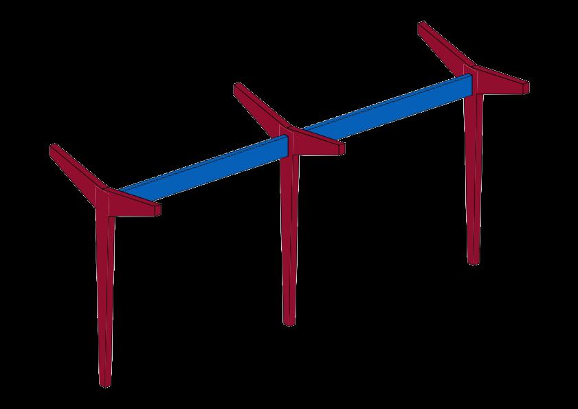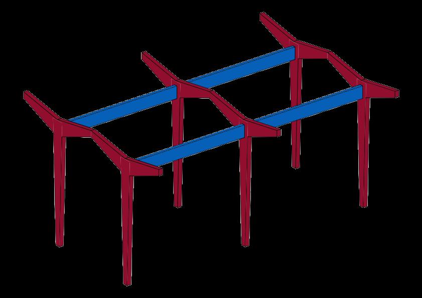 Esse é um dos projetos de pórticos centrais mais significativos já produzidos pelo Atelier Jean Prouvé8, e que reúne os princípios fundamentais de suas obras. Ele compõe uma área de 255 m², com 7 pórticos centrais de 296 cm de altura que se situam no eixo do comprimento do edifício e estão ligados entre si por uma viga central, e um corredor externo também com pórticos em toda sua extensão.