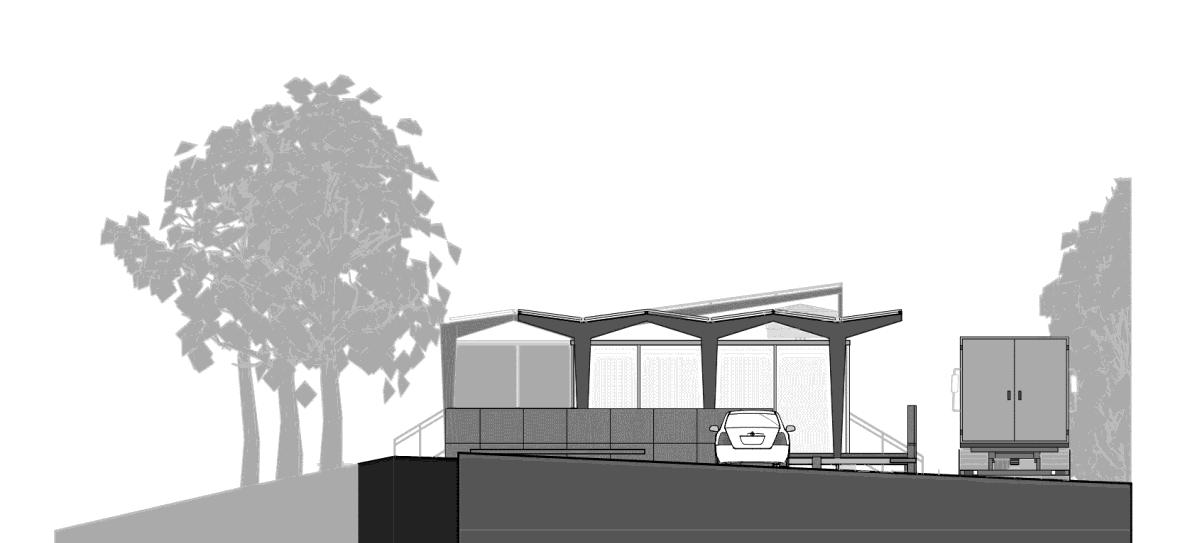 O principal destaque dessa obra para o trabalho se dá pela utilização de uma cobertura curva e elevada, garantindo ventilação entre o volume e a cobertura e, assim, maior conforto térmico aos usuários.