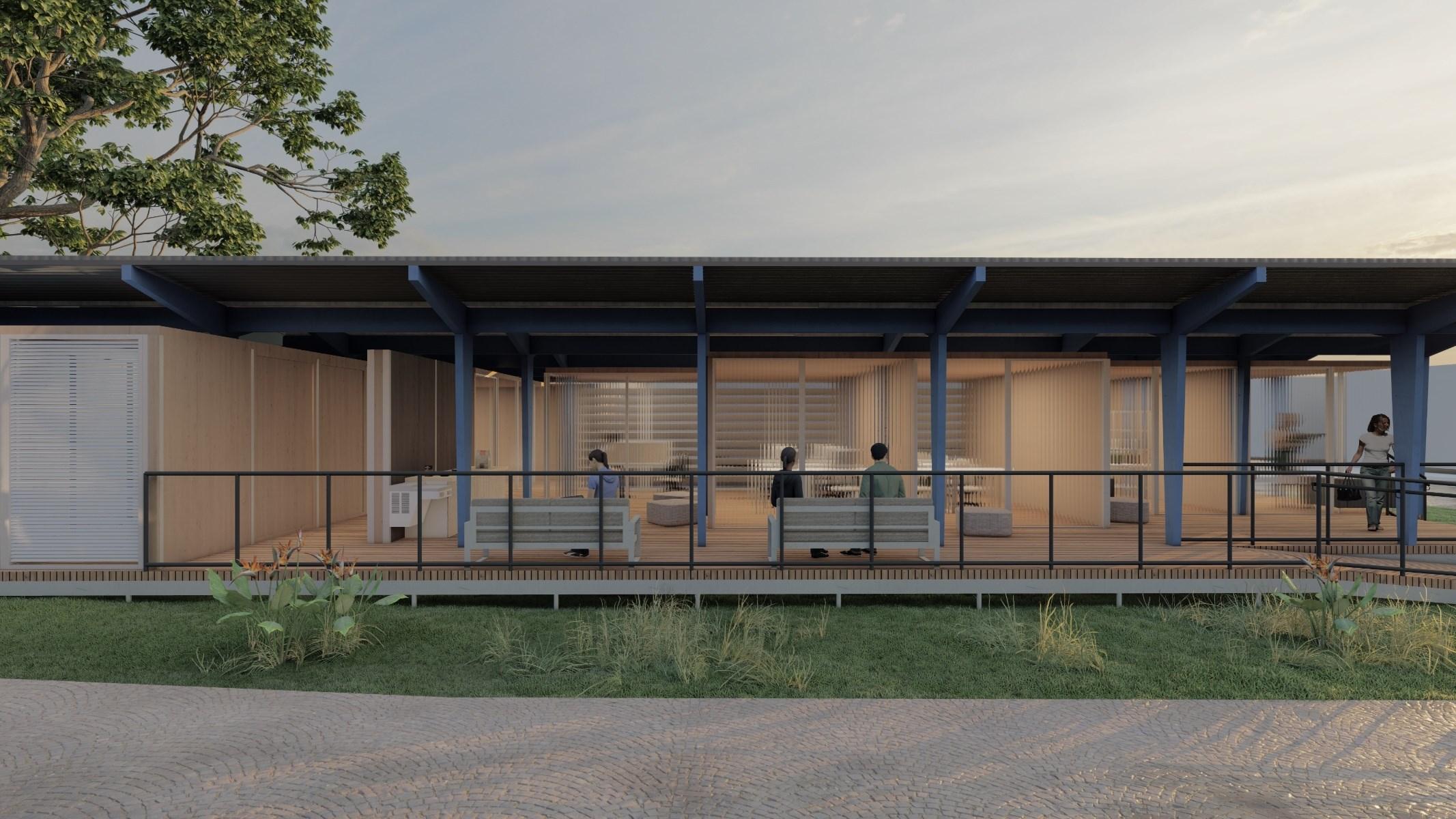 reconstruir o caráter cultural e de pesquisa na comunidade. É um exemplo de construção itinerante, que utiliza painéis retráteis com a funcionalidade de setorizar os ambientes, além de organizar os objetos de estudo dispostos ali.