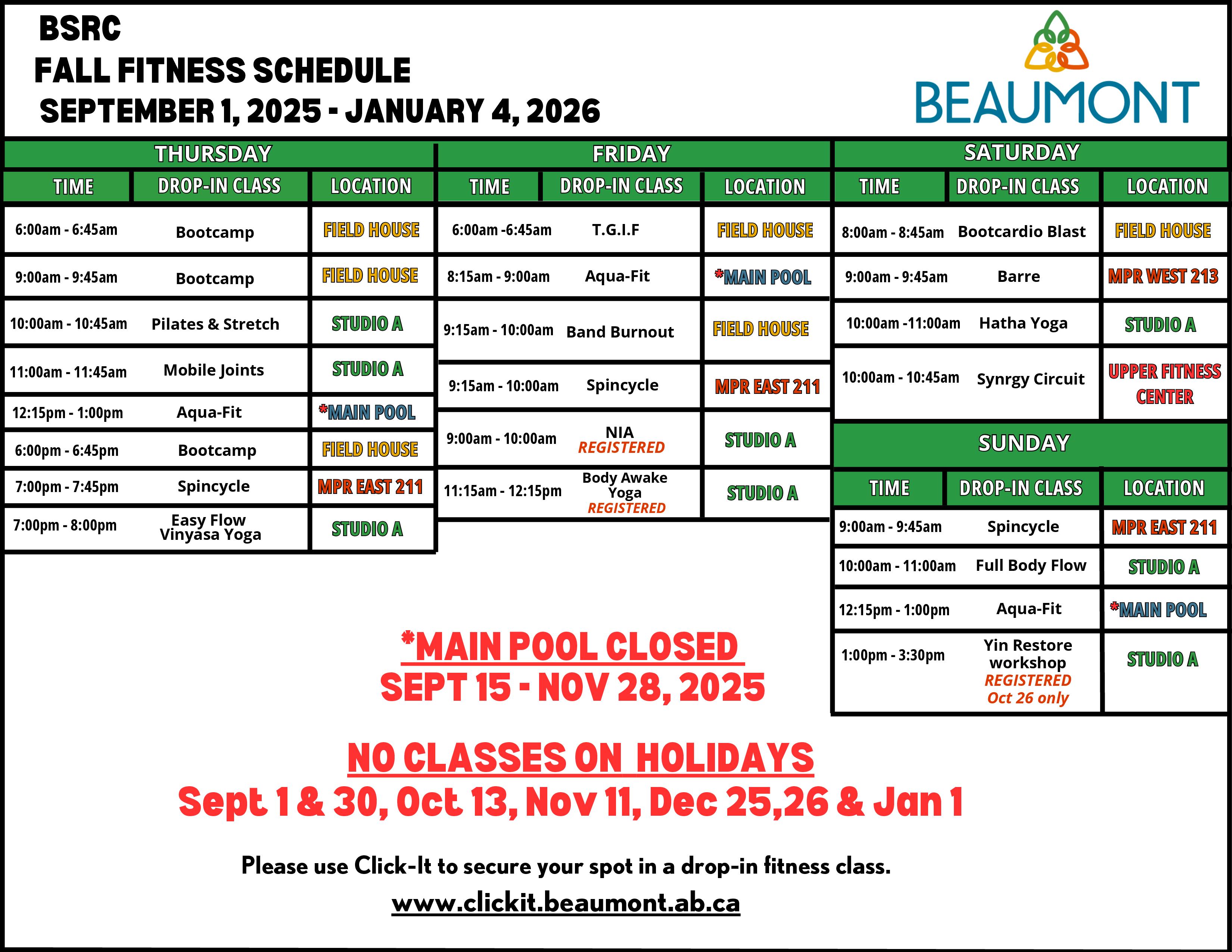 Fall Fitness Schedule 2025