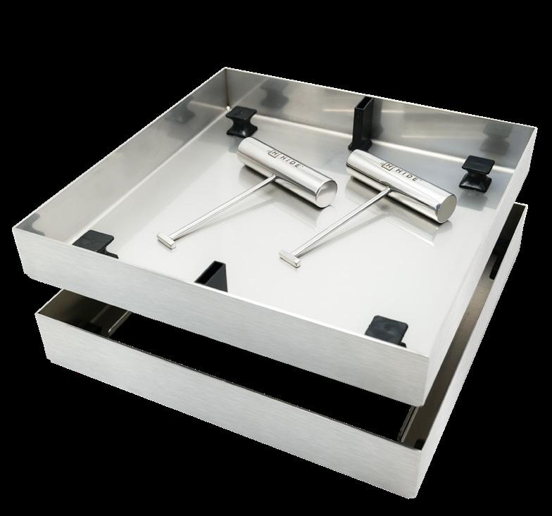 HIDE’s advanced lids for skimmer boxes, access points, and drain covers deliver a refined, high-end finish. They are offered in an extensive selection of sizes and depths to accommodate a variety of concrete installations.