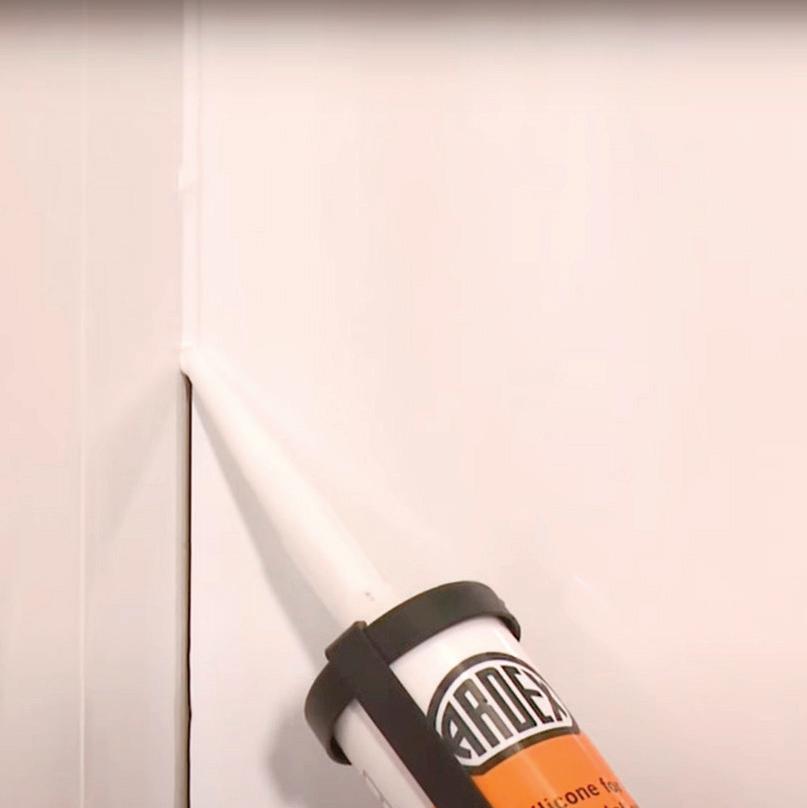 Having cleaned the wall and floor area thoroughly to remove all the dirt and dust, apply a liberal coating of primer using a brush and allow it to dry. Then use neutral cure silicone to run a generous bead along all internal corners (wall and floor). This includes the vertical corner joint in your shower. Finish off the bead using your finger. Note: Do not use any other kind of silicone.
