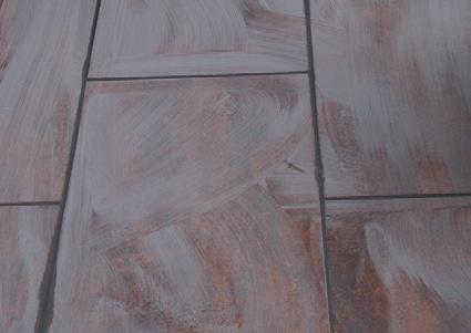 Floor tiles are generally rougher in texture than wall tiles, so the grout takes more time to remove. It is not difficult, just tedious but very important. Note, dark grouting is normally used in floors and can be messy if you allow it to get onto other surfaces. Use your masking tape to ensure this does not happen. Even cover the walls with newspaper, it is worth it.