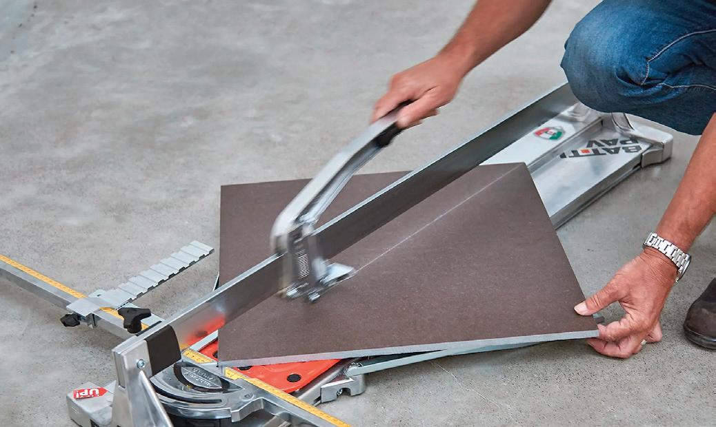 Cutting tiles is not difficult with access to decent equipment and with a little practice. If you’re cutting your own tiles (and especially if you’re doing this for the very first time), it’s a good idea to allow a couple of extra tiles for practice or in case of any slight mishaps that may happen. Refer to page 13 for a guide on how to cut tiles.