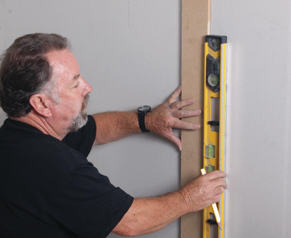 If you plan to tile over plaster or cement render, patch any small irregularities with one of the many excellent fillers available for this purpose. If the wall is really rough, it will probably be worth lining it with fibre cement sheeting. To do this, simply plug and screw 45mmx19mm battens to the wall at intervals recommended by the fibre cement sheet manufacturer. Make sure that each batten is vertical and level by packing behind the batten until your spirit level shows it is just right. Then simply fix the fibre cement sheet in accordance with the manufacturer’s instructions.