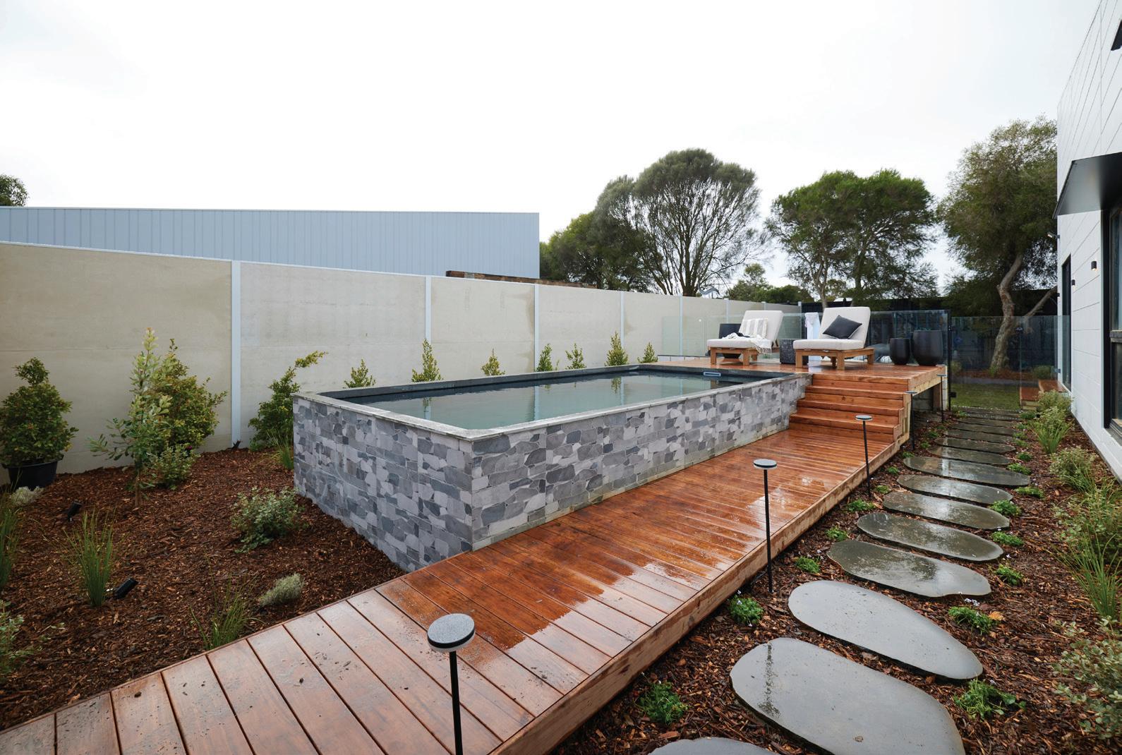 BACKYARD & POOL 1204934 Blaze Smoke CB-Porc L Coping Text Rect 400x600 Pool Edge 1273429 Cobblestone Grey 300x600 Outside of