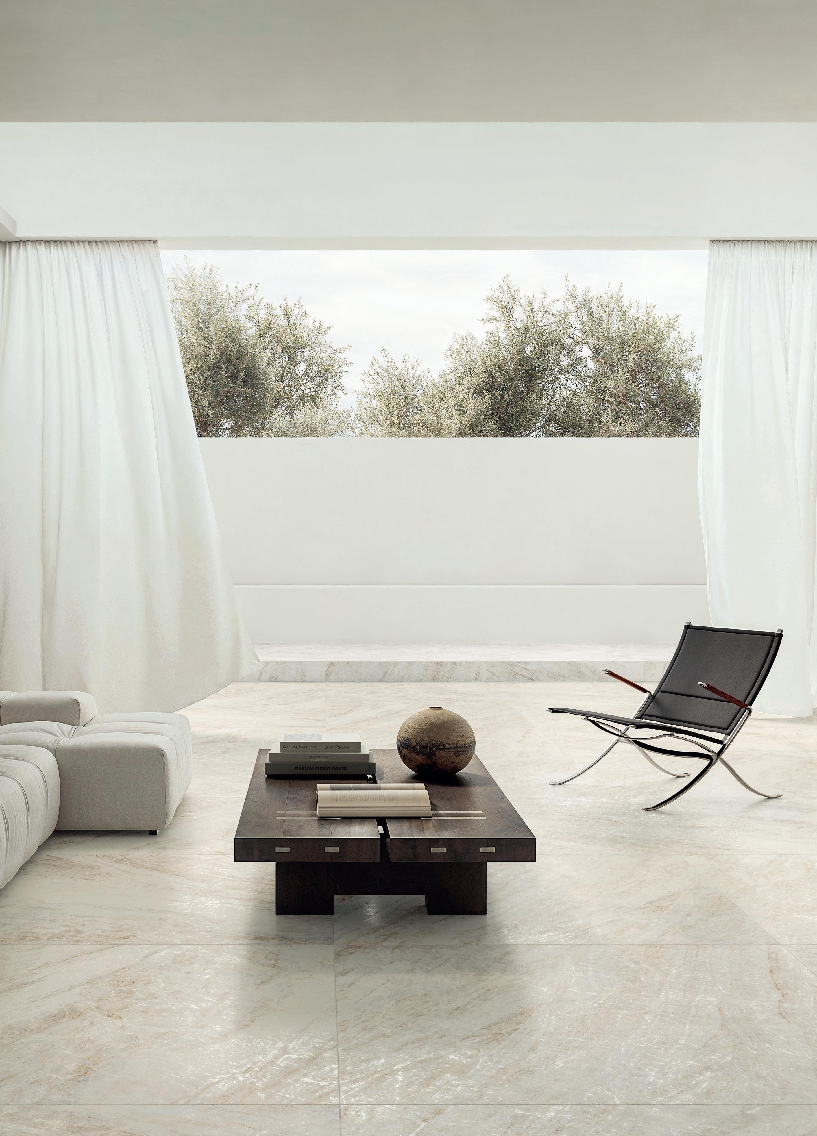 Oyster is a masterful homage to the calming rhythms of the sea, drawing inspiration from the rare beauty of Taj Mahal Quartzite.