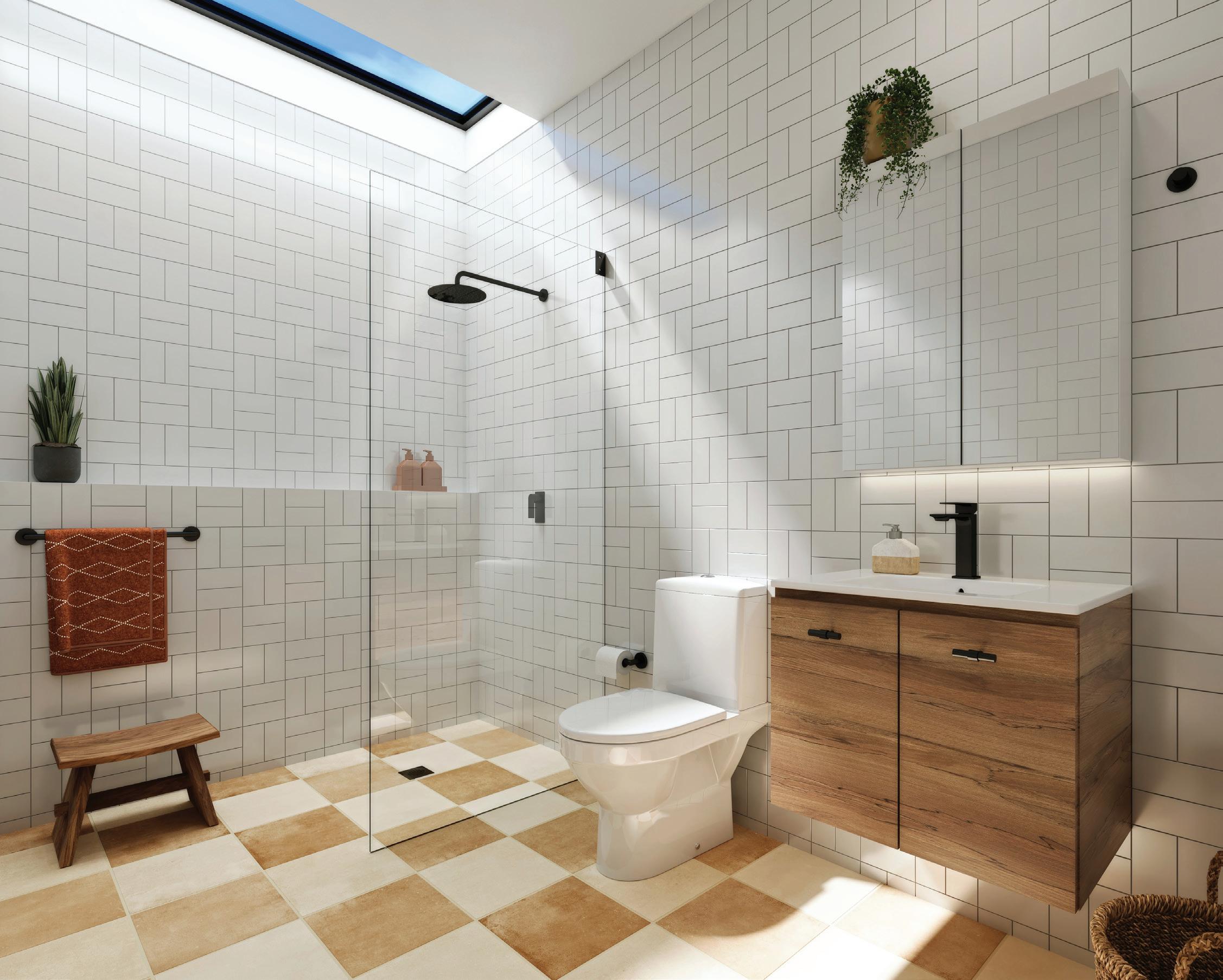 Shower Screen 1251283 Misha Single Entry Shower Screen Frameless 880X2000 Shower Fittings 1251288 Misha Single Entry Shower Screen Fitting Kit Matte Black Shower 1236835 Shower Arm only Round 400 Matte Black Shower 1236841 Shower Head only Round 200 Matte Black Shower Tapware 1236923 Ruki Wall/Shower Mixer Matte Black
