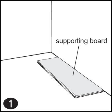 1. Supporting boards: After thoroughly cleaning the subfloor, you should begin laying from left to right. Place supporting boards by the wall. You should place one supporting board per each short seam of the first row. Supporting boards will be removed in further installation.