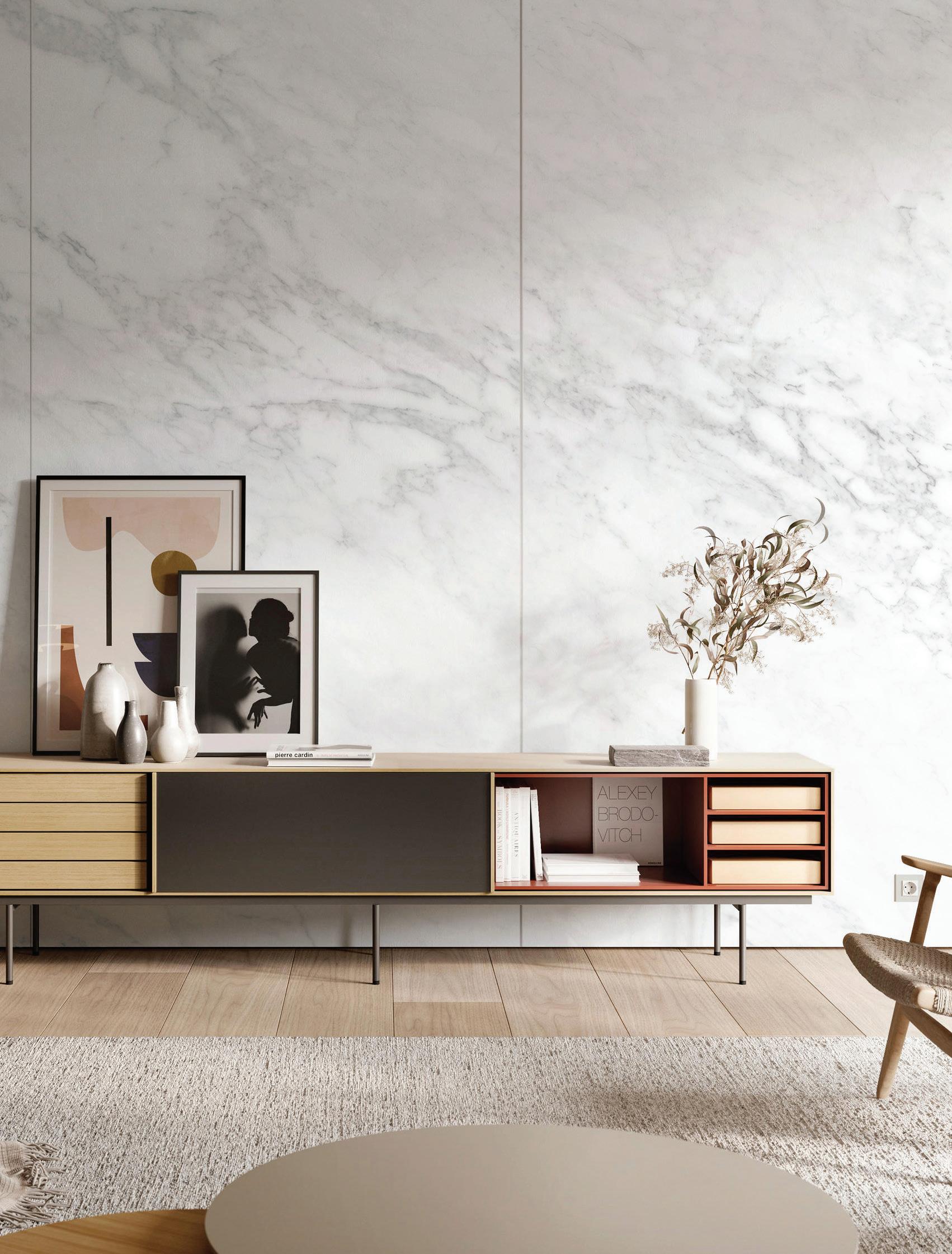 Spacious is a rectified 6mm thick glazed porcelain slab in stunning stone designs with matt and polished finishes.