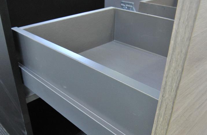 The PLATINUM COLLECTION includes European graphite soft-close drawers with full extension runners. These open all the way to allow for easy access to the very back of the drawer, maximising storage.