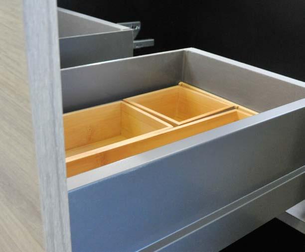 • Four bamboo finger jointed storage trays with modular organiser system and in-drawer powerpoint
